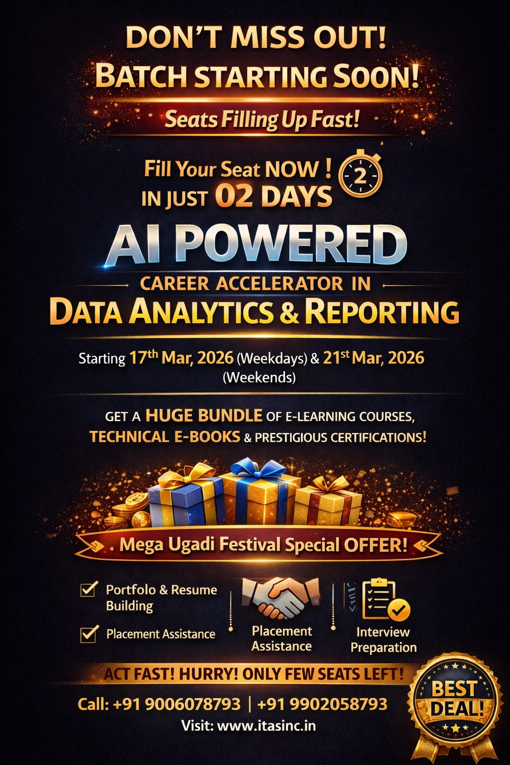 Perfect place to learn Analytics & Reporting. Especially both Raghu & Aadi are loaded with excellent knowledge on advanced excel, VBA, Macros, Analytics skills. I would recommend ITAS institute who is an enthusiast to learn/upgrade their Analytics/Reporting skills.